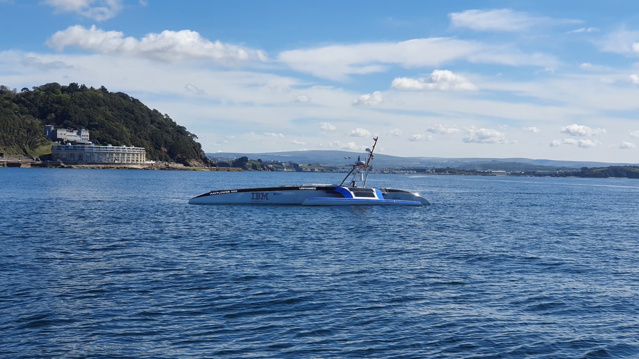 Quietly and peacefully, the Mayflower Autonomous Ship slipped her lines at her homeport at Turnchapel Wharf for the final time in the early hours this morning, and began her adventure sailing fully autonomously from Plymouth, UK, to Plymouth, Massachusetts.