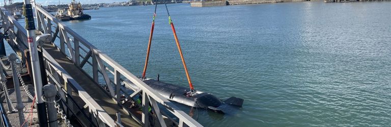 CETUS will be the largest and most complex uncrewed submersible operated by any European navy. It is officially described as “A representative large-scale AUV demonstrator to build trust in long endurance autonomous operations and be an adaptable testbed for mission payloads”. The vessel displaces 17 tonnes and is 12 metres long and 2.1 metres in diameter.”